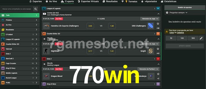 A aposta 770win oferece aos jogadores a experiência mais conveniente de apostas em eSports!